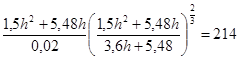 Решив это уравнение найдем: h=1,29 м ω=1,5h2 +5,1h=9,04 м2 R=0,93 м.
