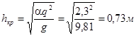 1.4 Определение типа и построение кривой свободной поверхностиПри проведении гидравлических расчетов неравномерного движения, например, при расчете кривых свободной поверхности, сопряжении бьефов, необходимо знать критическую глубину hкр . Критическая глубина соответствует минимуму удельной энергии сечения и в общем случае определяется из уравнения: