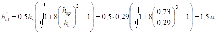 Третья ступень. Высота стенки падения Р3 =2,5 м. Бытовая глубина: hб =hсброного канала Глубина колодца: Величина перепада: Критическая глубина: Глубина в сжатом сечении: Вторая сопряженная глубина: