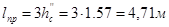 Решив это уравнение найдем: h=1,72 м ω=1,5h2 +4,23h=11,68м2 .