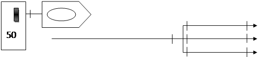 Ответ: время работы водяных стволов составит 5 минут. 3. Определить время работы трех стволов РСК-50 от автоцистерны АЦ-40(130)63Б, установленной на пожарный водоем объемом 50 м3, если магистральная рукавная линия состоит из четырех рукавов диаметром 66 мм Решение. 1. Составим схему боевого развертывания: