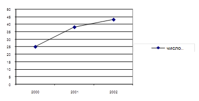 Рис. 3.1. Число заболевших ГБ в населенных пунктах Шумерлинского района за 3 года (2000–2002гг.). Проанализируем результаты нашего исследования. Мы получили, что заболеваемость АГ в Шумерлинском районе имеет тенденцию к росту: в 2000 году – 25 случаев, в 2001 году – 38 случаев, в 2002 году – 43 случая. Максимальная заболеваемость зарегистрирована в 2002 году за весь изучаемый период (3 года). Заболеваемость ГБ в 2001г. увеличилась, по сравнению с 2000 годом, на 34%. В 2002 году, по сравнению с 2001г. – на 11% (по сравнению с 2000г. – на 41%). По результатам группирования ИП заболеваемости АГ (без полового деления) получили, что заболеваемость ГБ по деревням и селам Шумерлинского района распределена неравномерно. В I группу со сверхвысокими показателями заболеваемости ГБ входят населенные пункты: Б. Алгаши, Р. Алгаши, Речной, д. Шумерля, а в V группу со сверхнизкими показателями – Синькасы, Бреняши, Л. Туваны, Юманаи, Тарн-Сирма. Во II группу с показателями выше среднерайонных входят: Дубовка, Саланчик, Кабаново. К IV группе (показатели ниже среднерайонной) относятся: Пояндайкино, К. Октябрь, Петропавловское, М. Туваны, Егоркино, Туваны, Ходары, Торханы, Пилешкасы. III группа (со среднерайонными показателями) – Мыслец, Кумашка.Рассмотрим администрации со сверхвысокими показателями заболеваемости АГ.