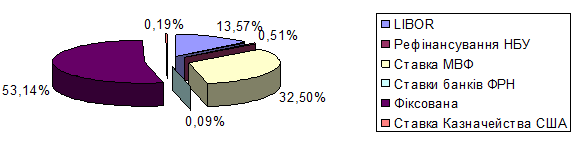 Рис. 2.1. Динаміка зростання державного боргу перед МВФ Загальну структуру державного боргу станом на 31 грудня 2009 року за видами ставок зображено на рис.2.2.