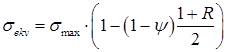 Аналіз великої кількості експериментів з визначення параметрів опору втомі дає змогу стверджувати, що кут нахилу кривих з рівним ступенем пошкодження в області багатоциклової втоми задовільно описується коефіцієнтом До симетричного циклу приводимо напруження, показане на рис. 6 точкою А