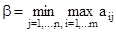 Найденное число a называется нижней ценой игры. Стратегия, соответствующая максимину, называется максиминной стратегией – она будет оптимальной стратегией игрока А. Посмотрим на эту ситуацию с точки зрения второго игрока: ему необходимо уменьшить свои потери. В таком случае критерию максимина превратится в минимаксный и гарантированный наименьший проигрыш для игрока В будет таким: