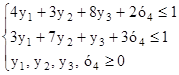 Проверим, имеет ли наша матричная игра седловую точку? Для этого используем принцип максимина. Выигрыш игрока А:a = Выигрыш игрока В:в = Как видим, выигрыши игроков не совпадают, значит у матрицы нет седловой точки. Значит, нужноискать смешанные стратегии. В данном конкретном случае в множестве ограничений будет четыре неравенства (т.к. в условии задачи четыре столбца). Пересчитывать симплекс- таблицы с четырьмя строками не очень сильно хочется, поэтому удобнее решить двойственную задачу (для коэффициентов вектора смешанной стратегии второго игрока), в которой будет всего две строки (т.к. в условии задачи две строки): найти вектор двойственных переменных Y = {y1, y2, … yn}, такой что: целевая функция g = при множестве ограничений:АY ≤ Е Для нашего примера задача линейного программирования будет такой: найти вектор Y = {y1, y2, y3, y4}, такой что: целевая функция g = при множестве ограничений: