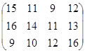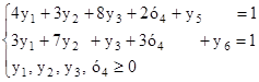 Пересчитываем и заполняем строку оценок: D0 = D1 = D2 = D3 = D4 = D5 = D6 = Повторяем 4-й этап. При проверке п. 1 видим, что все j ³ 0 . Следовательно, данный план {у3, у4} (в столбце "текущий базис") – оптимален. Больше пересчитывать симплекс-таблицу не нужно. Решение задачи линейного программирования полностью содержится в последней симплекс-таблице. Значения переменных находятся в столбце А0 возле соответствующих переменных. В нашем случае, мы видим, что у3 = Значение целевой функции – это значение оценки 0 . В нашем случае g = 0 = Значения двойственных переменных находятся в строке оценок возле искусственных переменных. В нашем случае это 5 и 6 , то есть х1 = Итак, мы получили решение прямой задачи (которая у нас была двойственной): Y = и двойственной задачи к данной (которая у нас была прямой): Х = Значения целевых функций при этом будут совпадать:f = g = Найдем цену игры:n = Далее найдем коэффициенты смешанной стратегии для первого игрока по формуле рi = Р = для второго игрока по формуле qi = Q = Особо "продвинутые" студенты при нахождении решения задачи линейного программирования, чтобы не считать симплекс-метод вручную академическим способом, могут воспользоваться средствами MS Excel. Это гораздо быстрее и удобнее.# Ответ: