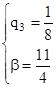 Далее находим p2: p2 = 1 – p1 = 1 – Итак, для игрока А все ясно: смешанная стратегия игрока А: Р = выигрыш игрока А:a = Аналогичные рассуждения нужно повторить и для игрока В. Точка максимума нижней огибающей – это точка пересечения прямой 3 и прямой 4. Значит оптимальная смешанная стратегия игрока В определяется двумя стратегиями В3 и В4 соответственно. Проигрыш игрока В, соответствующий i-той чистой стратегии игрока A, будет вычисляться по формуле: вi* = ai3 q3 + ai4 q4 = ai3 q3 + ai4 (1 – q3) = (ai3 – ai4) q3 + ai4 В данном случае будем иметь два уравнения, соответствующие двум возможным чистым стратегиям игрока А: в1* = 6q3 + 2 в2* = –2q3 + 3 Решив систему этих двух уравнений, найдем q3 – одну из вероятностей смешанной стратегии игрока В и в – выигрыш игрока В: