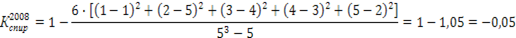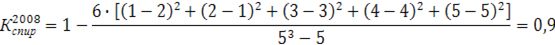 Степень соответствия нормативного и фактического рядов можно оценить с помощью коэффициента ранговой корреляции Спирмена: