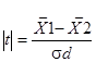 де σd– стандартна помилка різниці вибіркових середніх значень, σх1, σх2 – стандартні помилки середніх значень порівнюваних вибірок. Треба звернути увагу, що дисперсія різниці (так само, як і дисперсія суми) двох середніх значень дорівнює сумі дисперсій цих середніх значень. Для перевірки критерію знак різниці середніх значень не відіграє ролі, тому у формулі для розрахунку тестової статистики береться модуль різниці. Проте знак різниці важливий для інтерпретації результатів порівняння і висновку про перевагу одного з порівнюваних методів. Надалі при порівнянні параметрів у формулах для тестових статистик ми опускатимемо знак модуля. Гіпотезу про рівність математичних очікувань відкидають, якщо фактично отримана величина t-критерію перевершить або виявиться рівною табличному значенню для прийнятого рівня значимості і числа ступенів свободи. При цьому робиться висновок про наявність статистично значимих відмінностей між середніми значеннями на відповідному рівні значимості. Формули для розрахунку тестової статистики і числа ступенів свободи дещо розрізняються залежно від рівності або нерівності дисперсій порівнюваних сукупностей. Це питання вимагає уважного розгляду, особливо для вибірок малого об'єму (n < 20). У разі рівності дисперсій або вибірок достатньо великого об'єму помилка різниці середніх σdвизначається за такими формулами: для нерівночисельних вибірок при n1 ≠n2
