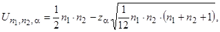 . Для кожної вибірки знаходяться суми рангів R і розраховуються статистики: Якщо нульова гіпотеза вірна і вибірки були взяті з однієї і тієї самої генеральної сукупності, ми не повинні очікувати переважання спостережень з однієї вибірки на одному з кінців з'єднаного варіаційного ряду, їх значення мають бути достатньо рівномірно розсіяні по всьому узагальненому ряду. Таким чином, дуже великі або дуже малі значення статистики R мають примусити нас засумніватися у справедливості нульової гіпотези. Як тестову статистику вибирають мінімальну величину U і порівнюють її з табличним значенням для прийнятого рівня значимості. Гіпотеза приймається, і відмінності вважаються недостовірними, якщо розраховане значення більше відповідного табличного. Зазвичай у таблицях наводяться критичні значення даного критерію для об'єму вибірок 20 або 40. У разі вибірок більшого об'єму для перевірки даного критерію застосовується нормальна апроксимація. Тоді критичні значення для критерію U можна розрахувати за формулою: