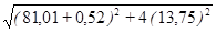 = где Nб – мощность, расходуемая на бурение скважины, кВт; –Угловая скорость вращения БТ, с Мощность на бурение равна сумме затрат мощности на вращение КБТ и мощности на разрушение забоя и определяется по формуле Nб =Nб.т + Nзаб , кВт. где Nб затраты мощности на бурение, кВт; Nб.т затраты мощности, на вращение колонны бурильных труб, кВт; Nзаб мощность, затраченная на разрушение горной породы на забое скважины, кВт; Мощность, расходуемая на вращение КБТ, определяется выражением Nб.т = k1 ·k2 ·k3 ·[1,6·10-8 k4 ·k5 (0,2+r”)·(0,9+0,02 f)·(1+0,44cosср)·M·Dс (1+1,3·10-2f ) n1,85 ·L0,75 +2·10-8 f·n·C], где k1 – коэффициент, учитывающий антивибрационные свойства бурового раствора (при использовании: малоглинистого раствора–1,1); k2 – коэффициент, учитывающий состояние стенок скважины (в устойчивом геологическом разрезе k2 =1,0); k3 – коэффициент, учитывающий влияние материала БТ на трение их о стенки скважины (для стальных труб k3 =1,0); k4 –коэффициент, учитывающий искривление траектории скважины, определяется по формуле разработанной в МГРИ (k4 = 1+60Jo , где Jo –интенсивность искривления скважины, k4 =1+60·0,003=1,18˚/м); k5 –коэффициент, учитывающий влияние соединений колонны бурильных труб (для ниппельных соединений k5 =1,0); r”–кривизна труб в свече, учитывающая собственную кривизну и несоосность соединений, мм/м (в практике применяют: для труб повышенного качества с ниппельным соединением и соединением «труба в трубу» r”=0,9 мм/м); f–зазор между стенками скважины (Dс ) и соединениями БТ(D'), мм [f=(Dс D')/2=(50,6-43)/2=3,8мм]; M=q'/(1000EI)0,16 =8,00/(1000·2·1011 ·1,07·10-7 )0,16 = 0,303–коэффициент, зависящий от диаметра скважины, массы одного погонного метра и жесткости КБТ; q'- линейная плотность бурильных труб с учётом высадок и резьбовых соединений, q'=4,52 кг/м3 ; Dс – диаметр скважины, Dс =50,6 мм; C – осевая нагрузка на забой, С=6000Н; L– глубина скважины, L=1400м; n – частота вращения КБТ, n=200 об/мин. Nб.т = 1,1·1·1·[1,6·10-8 ·1,18·1·(0,2+0,9)·(0,9+0,02·3,8)·(1+0,44·0,99)·0,303 ·50,6·(1+1,3·10-2 ·3,8) 2001,85 ·14000,75 +2·10-8 ·3,8·200·6000] = 2,221 Вт=2,221·103 Вт; Мощность, необходимую на разрушение забоя при бурении алмазными и твердосплавными коронками, можно приближенно определить по формуле: Nзаб = 0,6·10 7 ·C·n·(R+R1) Nзаб = 0,6·10 7 0,25·6000·200·(23+12) =0,63кВт = 0,63·103 Вт; где Nзаб – мощность, расходуемая на разрушение забоя скважины, кВт; – коэффициент трения породоразрушающего инструмента ПРИ о горную породу ( = 0,25); R и R1 – наружный и внутренний радиус коронки, мм; R= Dк/2 = 46/2 =23, мм; R1= dк/2 = 24/2 = 12, мм; где Dк и dк – наружный и внутренний диаметр алмазной коронки, мм (таблица 1); Nб = 2,221 + 0,63 = 2,851кВт = 2,851·103 Вт; Mкр = 2,851·103 /20,9= 136,41 Н·м; Полярный момент сопротивления площади поперечного сечения гладкой части БТ кручению, Wр , м3 определяется по формуле WР =2 Wо WР =2·4,96·10-6 = 9,92·10-6 м3 ; = 136,41/(9,92·10-6 )= 13751157,59 Па = 13,75 МПа; Затем рассчитывается суммарное напряжение, действующее на КБТ устье скважины при дополнительной нагрузке