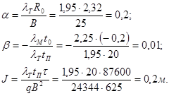 где λТ , λМ – коэффициенты теплопроводности соответственно талого и мерзлого грунта, ккал/м∙ч∙град; R0 – термическое сопротивление пола здания, м2 ∙ч∙град/ккал; B – ширина здания, м; t0 ,tП – температуры соответственно грунта на глубине 10 м и воздуха внутри помещения, ºС; τ – время от начала эксплуатации здания или сооружения, ч; q – теплота таяния мерзлого грунта, ккал/м3 ;
