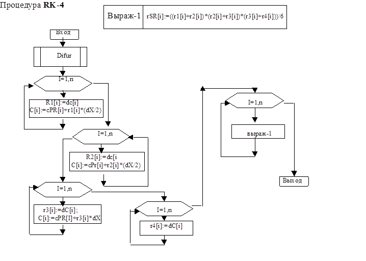 В данной процедуре задействованы операторы цикла Repeat/Until , и For/Do c операторами условного перехода IF/Then . В зависимости от условий вызываются процедуры Difur и Strok. В теле цикла постоянно вызывается процедура RK-4вызывающая 4 раза функцию Difur . Процедура DONE: