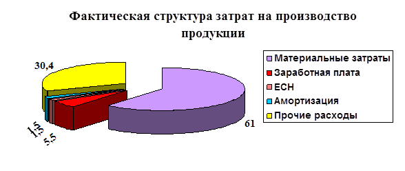 Как видно из таблицы, в 2005 г. фактические затраты предприятия выше 2004 года на 44142 тыс.руб. или на 68 %. Перерасход произошел по материальным и прочим затратам. По остальным видам наблюдается экономия. Наблюдается рост суммы, как переменных, так и постоянных расходов. Изменилась и структура затрат: увеличилась доля материальных и прочих затрат, доля всех остальных элементов затрат уменьшилась.