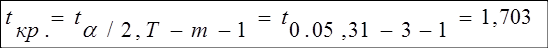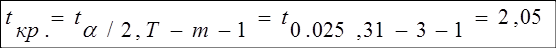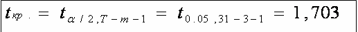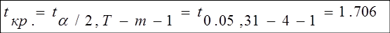 Оценим значимость коэффициентов уравнения регрессии. Для этого оценим t-статистику. Найдем критическое значение t-статистики на уровне значимости (