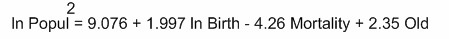 Где: POPUL2=ln (population^2) MORTALITY2=ln(mortality). Запишем уравнение вспомогательной модели 2: