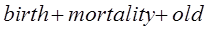 Где: Population – общая численность населения на начало 2008г. (чел.), Birth – численность рожденных детей за 2007г. (чел.), Mortality – численность умерших за 2007г. (чел), Old – численность населения в возрасте от 65 лет и старше (чел.).