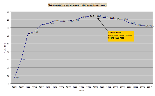 Город Асбест основан в 1889 году, статус города присвоен в 1933 году. Рассмотрим таблицу, в которой представлены некоторые цифры, характеризующие жизнь нашего города.