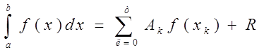 По заданным значениям Yi построим полином Лагранжа. Заменим f(x) полиномом Ln(x). Тогда где Rn(f) – ошибка квадратурной формулы. Отсюда, воспользовавшись выражением для Ln(x), получаем приближенную квадратурную формулу: