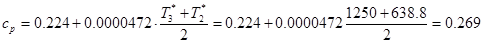 Средние удельные теплоёмкости для «чистых» продуктов сгорания и воздуха в интервале ТВ =692.93 К Т*3 =1250 К