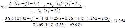 Камера сгорания Теоретически необходимое количество воздуха для сгорания 1 кг топлива L0 =14.8 кг /кг топлива. Вычисляется средняя удельная теплоёмкость «чистых» продуктов сгорания и воздуха для температурного интервала 288 К -1250К