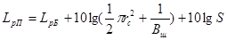 Звуковую мощность, излучаемую в шахту всасывания, в дБ определяют по формуле: где S - площадь, сечения шахты всасывания, м2 . При наличии в боксе шахты подсоса звуковую мощность, идущую в нее, в дБ определяют по формуле: