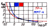 Недостаток полупроводниковых терморезисторов - нелинейность зависимости сопротивления от температуры и значительный разброс характеристик, что является основной причиной, сдерживающей их широкое применение для измерения температуры. Рис. 1 иллюстрирует типовую зависимость сопротивления полупроводниковых терморезисторов ТР-4 и ММТ-4 от температуры. Однако соответствующие схемотехнические решения линеаризации характеристики позволяют в значительной мере устранить эти недостатки. Основа прибора - интегрирующий аналого-цифровой преобразователь (АЦП) DA3, к выходу которого подключен четырехразрядный жидкокристаллический индикатор HG1. Такая элементная база позволила снизить энергопотребление и обеспечить прибору малые габариты и массу. Измерительную цепь прибора образуют токозадающий резистор R1, резисторы R2 и R3, формирующие образцовое напряжение Uобр, терморезистор R4, напряжение Uт, на котором изменяется в зависимости от температуры, и компенсирующий резистор, функцию которого выполняют резисторы R5, R6. Для уменьшения погрешности от самопрогрева терморезистора номинал токозадающего резистора R1 выбран таким, чтобы ток в измерительной цепи был равен примерно 0,1 мА. В приборе применено прямое измерение термосопротивления методом отношений - терморезистор R4 и образцовый резистор (R2+R3) включены последовательно и через них протекает одинаковый ток. Падение напряжения, возникающее на терморезисторе, поступает на входные выводы 30 и 31, а падение напряжения на образцовом резисторе, выполняющем функцию источника образцового напряжения Uобр- на выводы 35 и 36 АЦП DA3. При таком способе измерения результат преобразования АЦП не зависит от тока в измерительной цепи, а значит, отпадает надобность в традиционно применяемых высококачественных источниках тока и образцового напряжения, от которых во многом зависят точностные характеристики измерителя. Для прибора, работающего в режиме измерения температуры, типичной является задача компенсации начального значения термосопротивления при нулевой температуре. Для этого сопротивление компенсационного резистора (R5+R6) выбирают равным сопротивлению терморезистора R4 при нулевой температуре, а чтобы скомпенсировать сумму значений напряжения Uт+Uк, поступающую на вывод 30 АЦП, на его вывод 31 подают напряжение, равное 2 Uк, которое формирует операционный усилитель DA2 с коэффициентом усиления K=(1+R14/R13)=2. Тогда с учетом того, что с повышением температуры сопротивление терморезистора уменьшается, имеем Uвх ацп = Uвх+ --Uвх -=2Uк - (Uт+Uк)=Uк --Uт Линеаризацию нелинейной зависимости термосопротивления от температуры реализуют шунтированием терморезистора R4 резистором R11-грубо, а точно- введением в устройство ОУ DA1. Но шунтирующий резистор R11 лишь частично спрямляет эту нелинейность, несколько расширяя рабочий температурный интервал. Принцип точной линеаризации основан на изменении коэффициента преобразования АЦП в зависимости от образцового напряжения Uобр. Оно изменяется благодаря обратной связи через ОУ DA1. При такой связи часть входного напряжения UВХ, определяемая коэффициентом усиления ОУ DA1 B=[l+(R8+R9)/R7] Добавляется к напряжению Uобp [З]. Чем больше увеличивается сопротивление терморезистора при снижении температуры, тем быстрее растет образцовое напряжение, а это приводит к пропорциональному ум