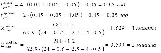де Z’ – кількість ВРМ на i-тому вантажному фронті, що можуть працювати одночасно, визначається за формулою:
