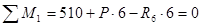 Сечение 1-1 участок 6-4 0≤Z1≤6 M1(Z1)=Р*Z1 M1(0)=0 M1(6)=510