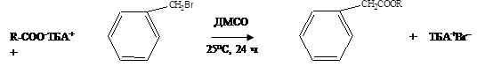 Рисунок 3 – Строение звена деацелированного геллана. Между собой тетрасахаридные фрагменты соединены α 1→3 гликозидными связями. Примерный состав: 60 % глюкозных остатков, 20 % остатков от рамнозы и 20 % от глюкуроновой кислоты. Карбоксильная группа в глюкуроновой кислоте проявляет все характерные реакции карбоновых кислот, но при несколько отличных условиях. Например, можно получить бензиловый эфир, если проводить реакцию с использованием тетрабутиламмониевого производного природного геллана в реакции взаимодействия с бензилбромидом в диметилсульфоксиде [18]: