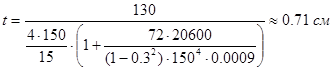За найбільшим згинальним моментом знаходимо необхідну товщину плити за формулою 152 [1]: