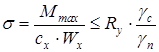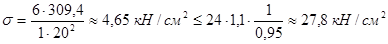 Перевірку міцності прийнятого перерізу виконуємо за фомулою 9 [1]: