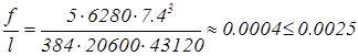 За формулою 1.15 перевіряємо жорсткість балки настилу, але значення припустимого прогину приймаємо