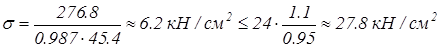 За формулою 2.13 перевіряємо ребро жорсткості головної балки на торцеве зминання: