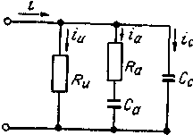 а) Рис. 1 - Схема замещения изоляции (а) и диаграмма токов, протекающих в ней (б) Для изучения перечисленных процессов используют схему замещения изоляции, показанную на рисунке 1, а. Резистор Ru характеризует сопротивление сквозному току; конденсатор С а - емкость, обусловленную дипольной поляризацией; конденсатор Сс - емкость электронной поляризации (геометрическая емкость); резистор эквивалентные потери при дипольной поляризации. На рисунке 1,6 показаны зависимости токов, проходящих через изоляцию, от времени нахождения под постоянным напряжением. Как видно, ток абсорбции затухает по мере завершения процессов замедленной поляризации, а ток сквозной проводимости сохраняется неизменным. Токи смещения столь кратковременны, что их не учитывают. Суммарный ток I имеет затухающий характер. Истинное сопротивление изоляции зависит от сквозного тока можно определить по формуле Ru = U /( i - ia ) где U - приложенное напряжение, В. Поскольку измерение ia связано с определенными трудностями, сопротивление изоляции рассчитывают как частное от деления напряжения на значение тока, установившегося через минуту после включения напряжения. К этому моменту ток ia затухает и не вносит погрешность. Если же измерение проводить при небольшой выдержке времени, то может создаться неправильное представление о сопротивлении изоляции. Для исправной изоляции в ПУЭ и ПТЭ установлены нормативы, характеризующие параметры схемы замещения. Например, наименьшее допустимое сопротивление (МОм) изоляции электродвигателя мощностью Рн (кВт) при рабочей температуре определяют по выражению Ru ≥ U н /(1000+0,01Рн ) где U н - номинальное линейное напряжение, В. При эксплуатации электрооборудования его изоляция подвергается влиянию рабочего напряжения, кратковременным перенапряжениям от грозовых разрядов и коммутационных операций, механическим и тепловым нагрузкам, загрязнению, увлажнению и другим неблагоприятным воздействиям. В результате этого свойства изоляции непрерывно ухудшаются. Из схемы замещения видно, что от качества изоляции зависят значения токов утечки, абсорбции, смещения и мощности потерь в цепи Ra Ca . Поэтому их принимают за диагностические параметры изоляции. Дополнительно используют характеристики электрической прочности. Задача диагностирования состоит в том, чтобы определить фактические значения параметров и сравнить их с соответствующими нормами. К основным способам диагностирования изоляции относятся: измерение сопротивления изоляции; измерение емкости изоляции; измерение диэлектрических потерь; испытание повышенным напряжением переменного или постоянного тока. Полное заключение о состоянии изоляции делают по совокупности результатов измерений. Но в ряде случаев выделяют отдельные определяющие параметры, которые в некоторых условиях достаточно полно оценивают качество изоляции. Такой подход оправдан для выявления конкретных неисправностей изоляции (увлажнение, старение и т. п.).