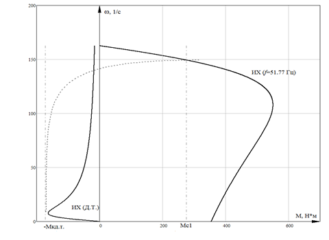 Аналогичными будут расчёты при построении МХ при минимальной частоте. Синхронная частота вращения при различных моментах: Минимальный статический момент: