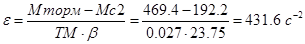 Начальные и конечные значения скорости и момента: Полное время торможения: