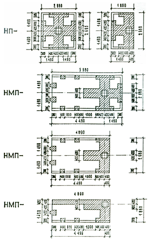 3.2Панели перекрытия 3.2.1. Перед монтажом панелей перекрытия необходимо убедится в том, что: - расстояние между колоннами равны проектным в пределах допусков; - геометрические размеры панелей (размеры диагоналей, параллельность и др.), арматурные выпуски, закладные детали и т.п. соответствуют проектным требованиям; - отсутствуют технологические наплывы бетона, мешающие монтажу и сварке. 3.2.2. Вариант монтажа 2-х модульных панелей предусматривает следующую последовательность: - монтируется 1-модульная надколонная панель НП- - монтируются 2-модульные панели НМП- - монтируются 2-модульные панели МСП-