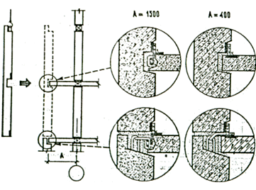 3.1.3. Образовавшиеся пазухи в стакане после установки колонны бетонируются мелкозернистым бетоном В25 с тщательным уплотнением. 3.1.4. Если высота колонны от обреза стакана не превышает 12см, то фиксацию ее клиньями от потери устойчивости можно считать достаточной; если этот размер превышает 12см, то необходима установка специальных подкосов, которые снимаются после монтажа и замоноличивание первого перекрытия. 3.1.5. Во время монтажа колонны необходимо следить за тем, чтобы продольные риски располагались по отношению к примыкающим к ним ограждающим конструкциям согласно рисунка.