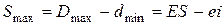 До посадок із зазором ставляться також посадки, у яких нижня границя поля допуску отвору збігається з верхньою границею поля допуску вала, тобто Smin = 0. У зв'язку з коливаннями дійсних розмірів з’єднувальних деталей у межах заданих допусків зазори будуть коливатися від найменшого до найбільшого значення. НАЙБІЛЬШИЙ ЗАЗОР (Smax ) - є позитивна різниця між найбільшим граничним розміром отвору і найменшим граничним розміром вала або алгебраїчна різниця між верхнім граничним відхиленням отвору і нижнім граничним відхиленням вала: