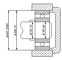 Рис. 1 Підшипниковий вузол 9.4 Типи навантаження підшипників кочення При виборі посадок по приєднувальних поверхнях підшипників ураховують величину й напрямок діючих на підшипник навантажень, частоту обертання, тип підшипника, його температуру, умови монтажу і вид навантаження, що залежить від того, обертається чи ні кільце щодо радіального навантаження. Навантаження може бути місцевим, циркуляційним і коливальним. Кільце випробовує місцеве навантаження, якщо воно щодо радіального навантаження не обертається, а навантаження сприймає лише певна ділянка доріжки кочення цього кільця - у цьому випадку посадка призначається із зазором. При циркуляційному навантаженні кільця радіальне навантаження щодо кільця (або кільце щодо навантаження) обертається. Тіла кочення в процесі обертання передають сприйману ними радіальне навантаження доріжці кочення послідовно по всій окружності. Посадка призначається послідовно. При коливальному навантаженні на кільце одночасно діють постійна по напрямку сила і обертова сила. Характер навантаження, прикладеної до кільця, у кожен момент часу визначається рівнодіючої цих сил, а посадка вибирається із числа щільно рухливих. При обертовому валу з'єднання внутрішнього кільця підшипника повинне бути нерухомим, а по зовнішньому діаметрі підшипника можливий невеликий зазор. Якщо вал нерухомий, а обертається корпус із зовнішнім кільцем підшипника, то нерухома посадка повинна бути за зовнішнім діаметром підшипника, а за внутрішнім діаметром підшипника може бути і невеликий зазор із валом. Таблиця 2 Рекомендовані поля допусків валів та отворів корпусів для підшипників кочення з циркуляційно-навантаженим кільцем
