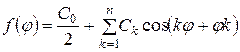 де Ск - амплітуда коливань гармоніки. φk - початкова фаза. Функція f(φ) визначається сукупністю величин Ск , (спектра амплітуд) і φk (спектра фаз). Далі використаємо ряд з обмеженим числом членів, тобто тригонометричний поліном: