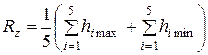 2 - Rz - висота нерівностей профілю по десяти точках - є сума середніх абсолютних відхилень точок п'яти найменших min - Нmin і п'яти найбільших max - Нmax профілю в межах базової довжини.
