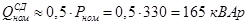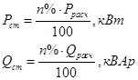 Расчетная мощность батарей конденсаторов, устанавливаемых у ШР: