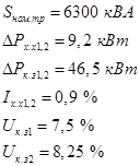 Намечаем для дальнейшего рассмотрения трансформаторы двух номинальных мощностей: