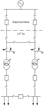 7.1 Выбор и обоснование схемы внешнего электроснабженияВ качестве схемы внешнего электроснабжения принимаем схему: два блока с отделителями и неавтоматической перемычкой со стороны линий [2].