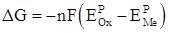Известно, что любая реакция протекает в данном направлении, если при этом уменьшается энергия Гиббса ΔG <0. Энергия Гиббса ΔG связана с ЭДС электрохимической реакции следующим соотношением.