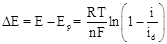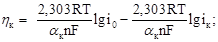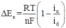 Таким образом, из уравнений катодного, и анодного концентрационного перенапряжения следует, что данный вид перенапряжения начинает сказываться лишь при больших плотностях тока. Так, при id