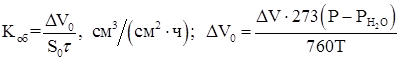 где R0 и R1 – электрическое сопротивление образца соответственно до коррозии и после коррозионного испытания в течение τ, ч. 5. Объемный показатель коррозии (объем поглощенного или выделившегося в процессе коррозии металла газа, приведенный к нормальным условиям и отнесенный к единице поверхности металла и к единице времени):